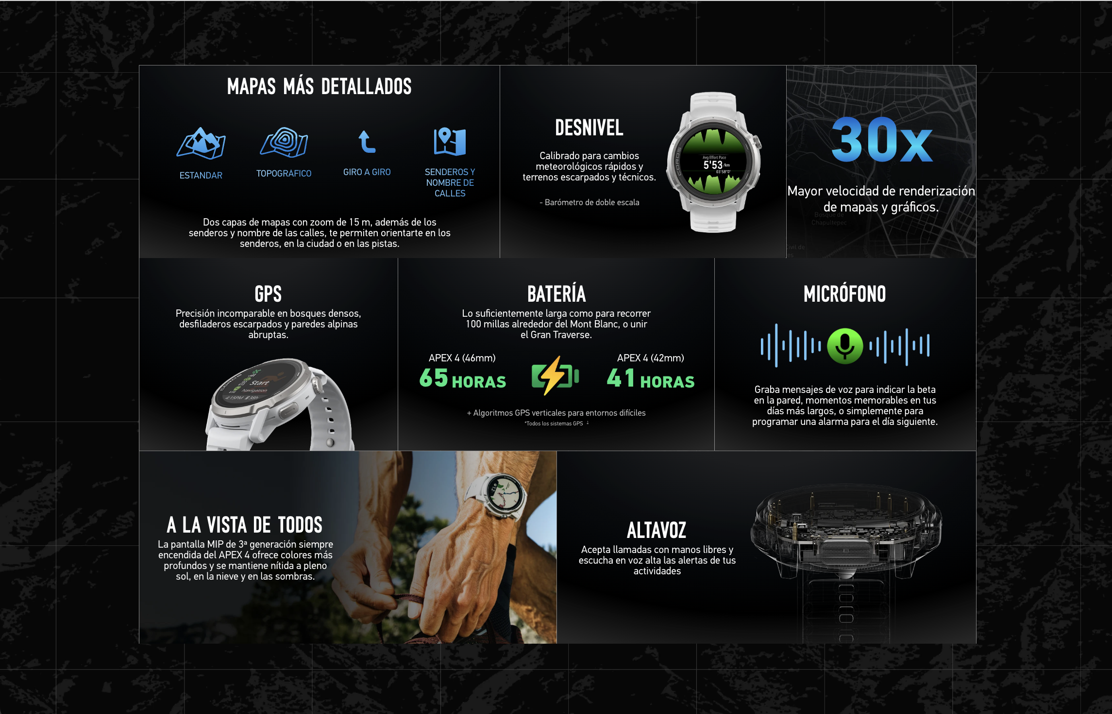 Los deportes de montaña tienen exigencias únicas. El APEX 4 ha sido diseñado para satisfacerlas todas.