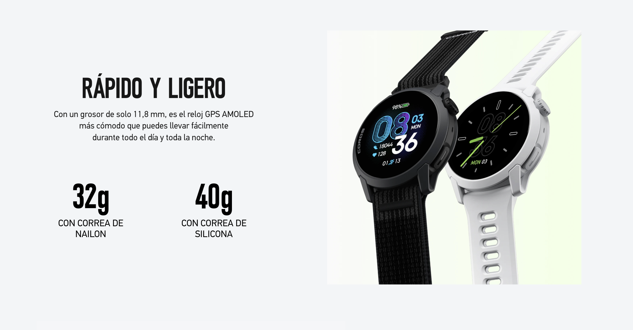 40g Con banda de silicona 32g Con banda de nailon |