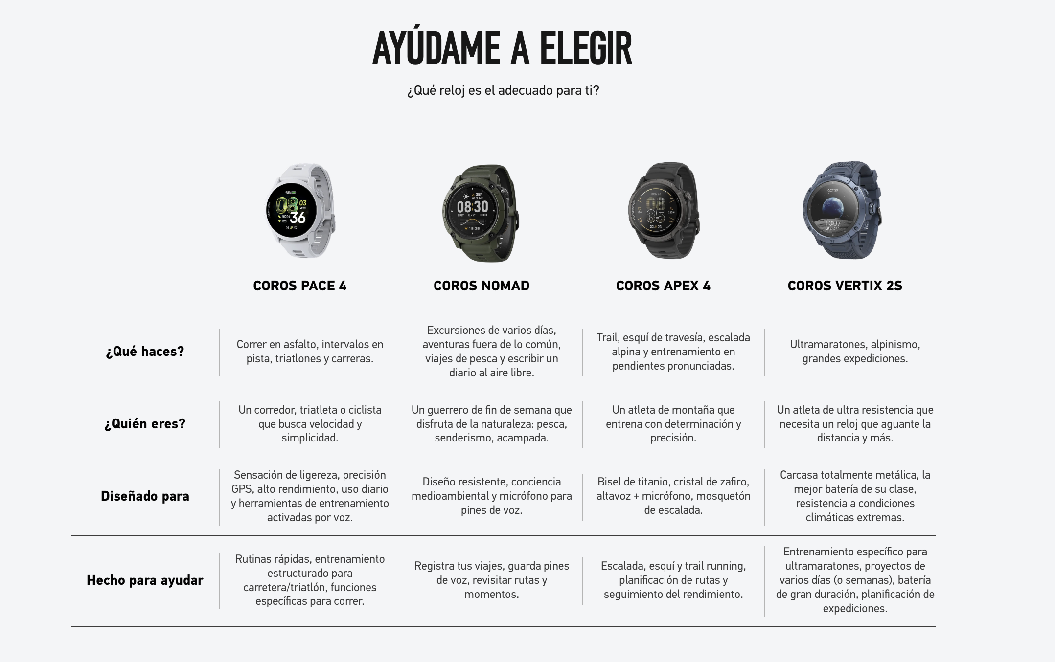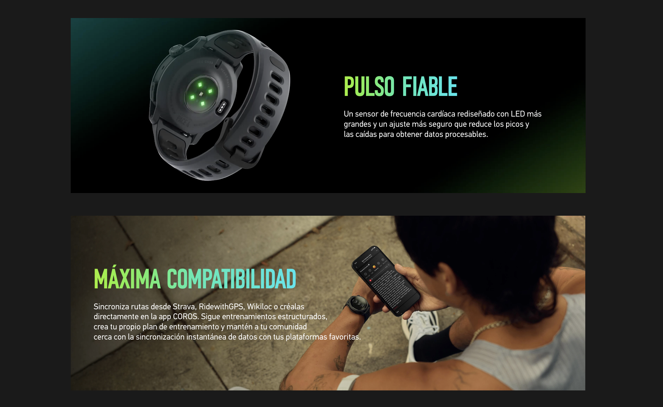 Alertas diarias Incluye calorías activas, tiempo de ejercicio, tormenta y más alertas Firmware actualizable Con Wi-Fi y la app COROS Buscar mi teléfono
