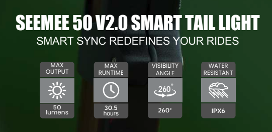 El SEEMEE 50 V2.0 adopta la avanzada tecnología de control FTR LightSync, sincronizando las luces delantera y trasera a través de un control remoto para una gestión sencilla y más segura.