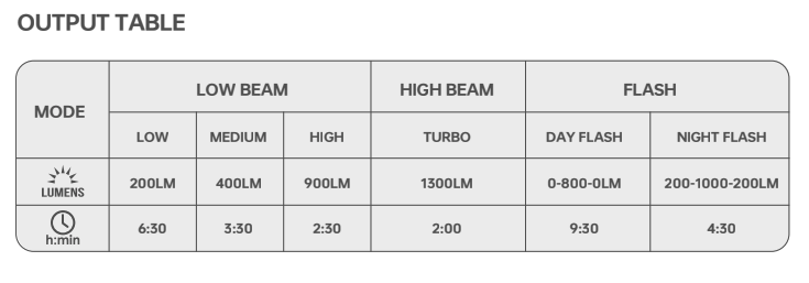 ● Modo de faro alto para mayor visibilidad en caminos oscuros y descensos a alta velocidad.