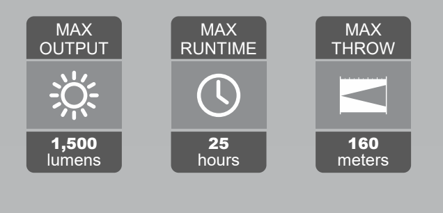 • Hasta 25 horas de autonomía con 1,5 horas de funcionamiento en el modo de brillo máximo.