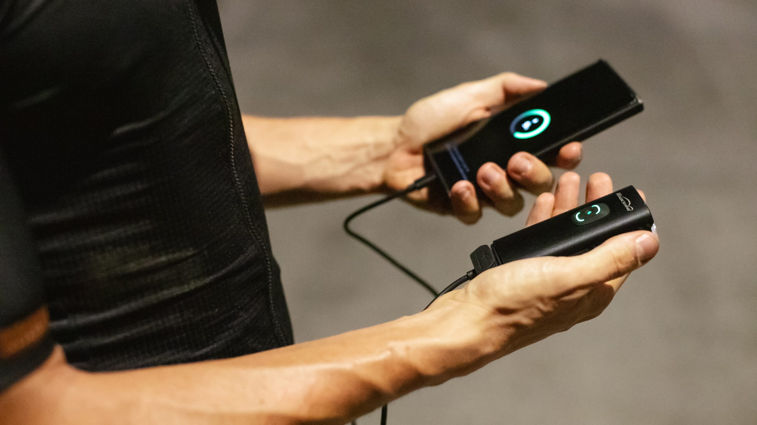 Con el puerto USB-C para cargar y descargar, recarga la batería y alimenta tus dispositivos externos, como ciclocomputadores o teléfonos, mientras estás en movimiento.