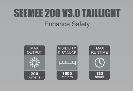 Con una salida máxima de 200 lúmenes, luz OptiTracing, sensor de movimiento, sensor de brillo, IPX6, una operación mucho más sencilla y un tiempo de uso más largo, el SEEMEE 200 V3.0 es uno de los mejores intermitentes traseros del mundo