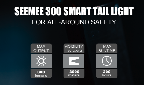 La SEEMEE 300 es una luz trasera impresionante y potente, diseñada para ciclismo en carretera, desplazamientos urbanos y desplazamientos diarios.