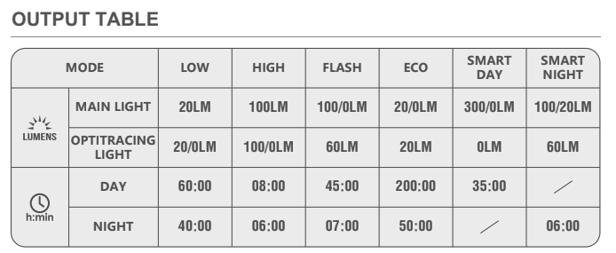 Cuenta con dos fuentes de luz, una luz principal y una luz OptiTracing. La luz principal utiliza dos LED con una salida máxima combinada de 300 lúmenes y diferentes ángulos de lente para aumentar la visibilidad. Además, la luz OptiTracing puede proyectar una luz de advertencia roja de 360° en la carretera, brindándote una visibilidad total y manteniéndote más seguro en el tráfico.