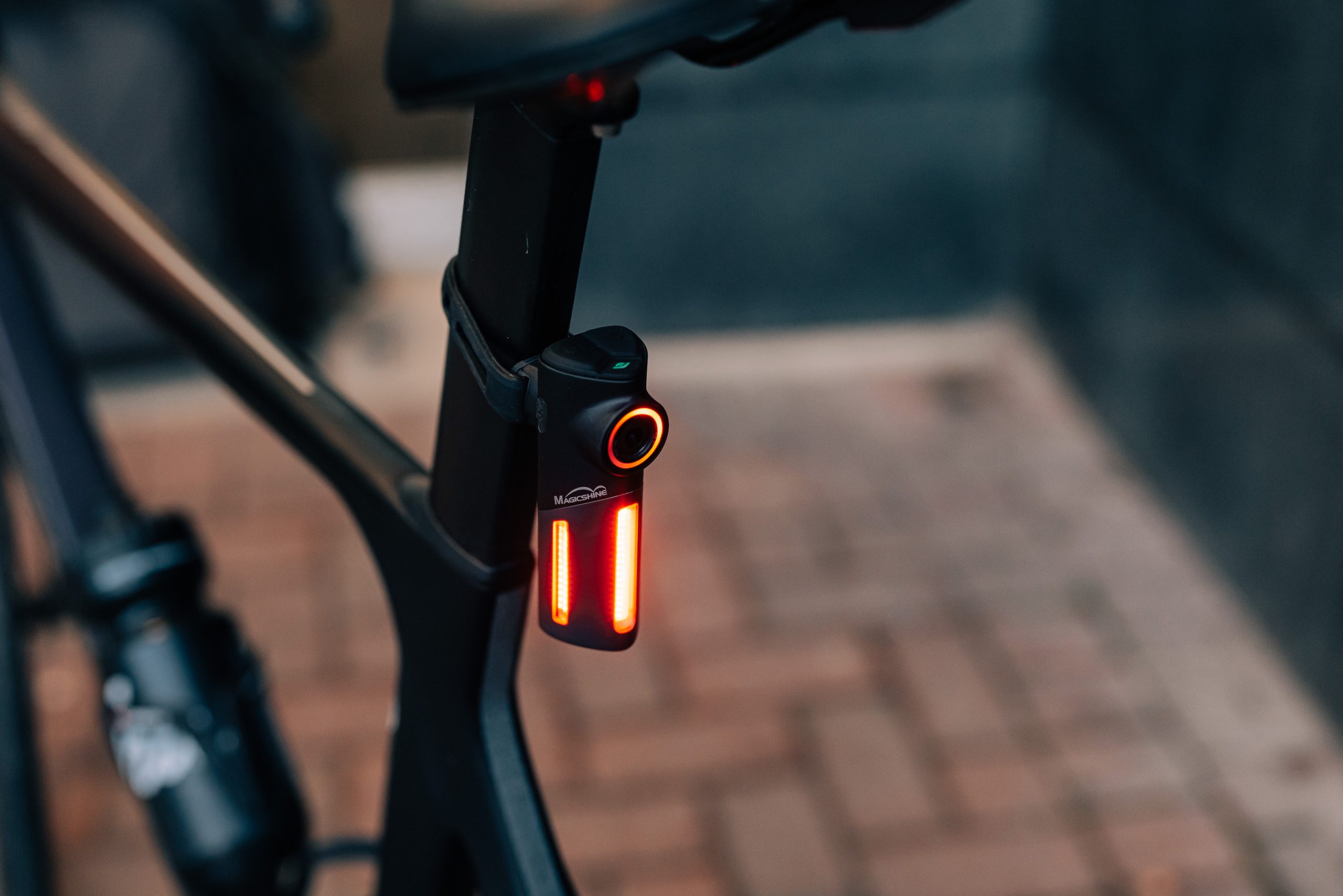 Para los ciclistas, las colisiones por detrás provocan accidentes más graves, especialmente en eventos profesionales o al circular por carretera. El SEEMEE DV, la primera luz trasera con cámara de MAGICSHINE, combina las funciones de grabación de cámara y luz trasera de bicicleta para una seguridad máxima. Además de advertir a los vehículos que vienen detrás, también captura información crucial, como matrículas, en caso de accidente gracias a su lente gran angular.